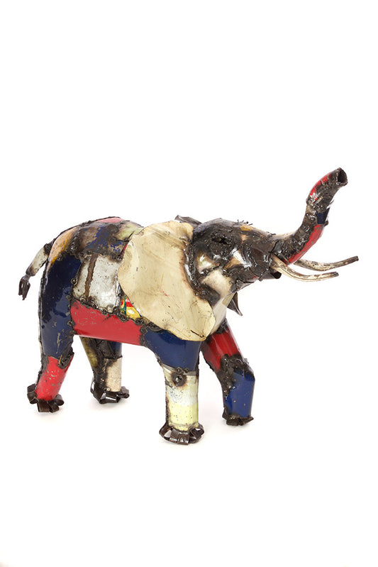 Swahili African Modern Colorful Recycled Oil Drum Elephant Sculpture
