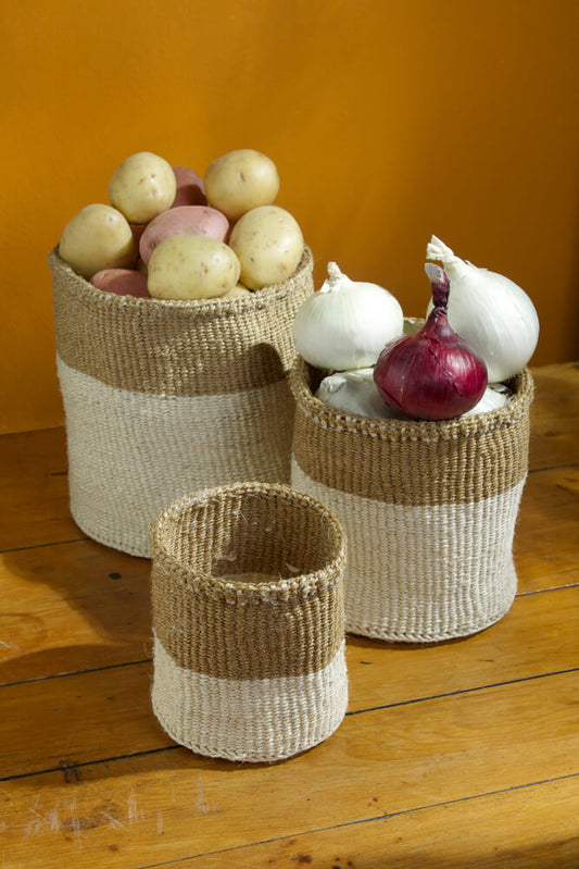 Swahili African Modern Set of Three Dual Tone Sisal Baskets