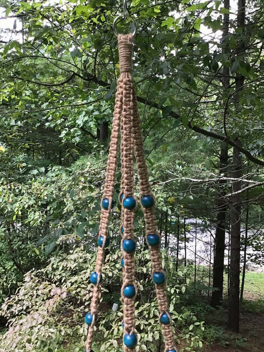 HangingKnots Jute Hanger with Round Teal Wooden Beads