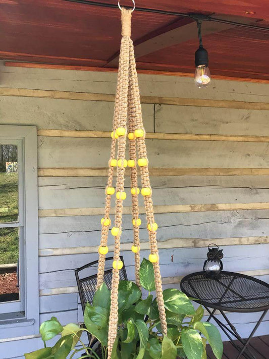 HangingKnots Jute Hanger with Round Yellow Wooden Beads