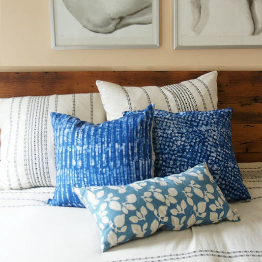 Rustic Loom Indigo Blue Leaf Hand Blockprinted Cotton Throw Pillow