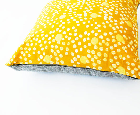 Rustic Loom Maize Gold Coral Dot Batik Blockprinted Cotton Pillow
