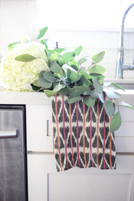 Rustic Loom Tea Towel Orange Ikat Handwoven Tulip Pattern