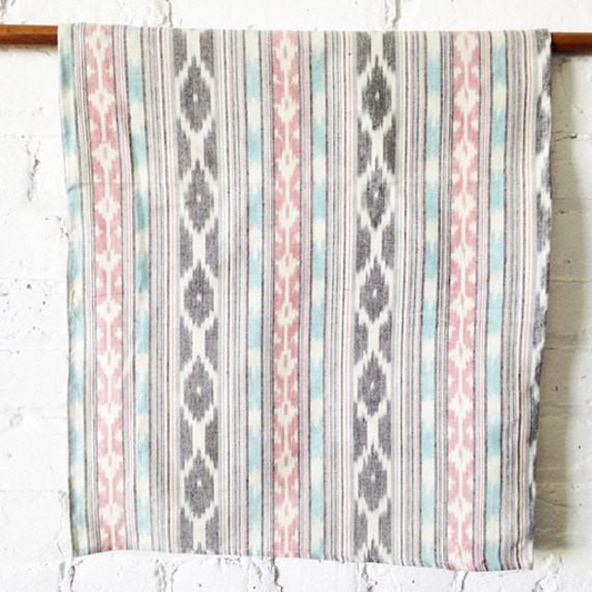 Rustic Loom Aqua Pink Gray Stripe Woven Cotton Ikat Tea Towel