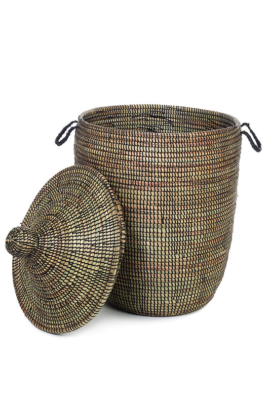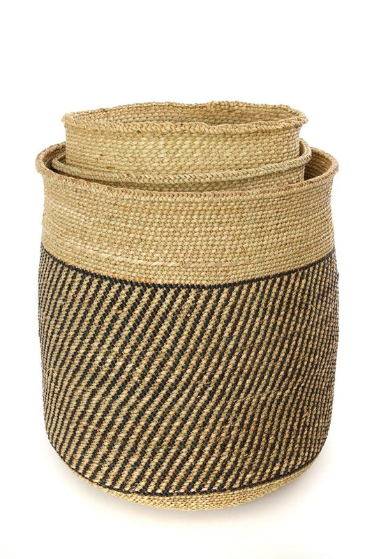 Swahili African Modern Iringa Baskets with Diagonal Black Stripes